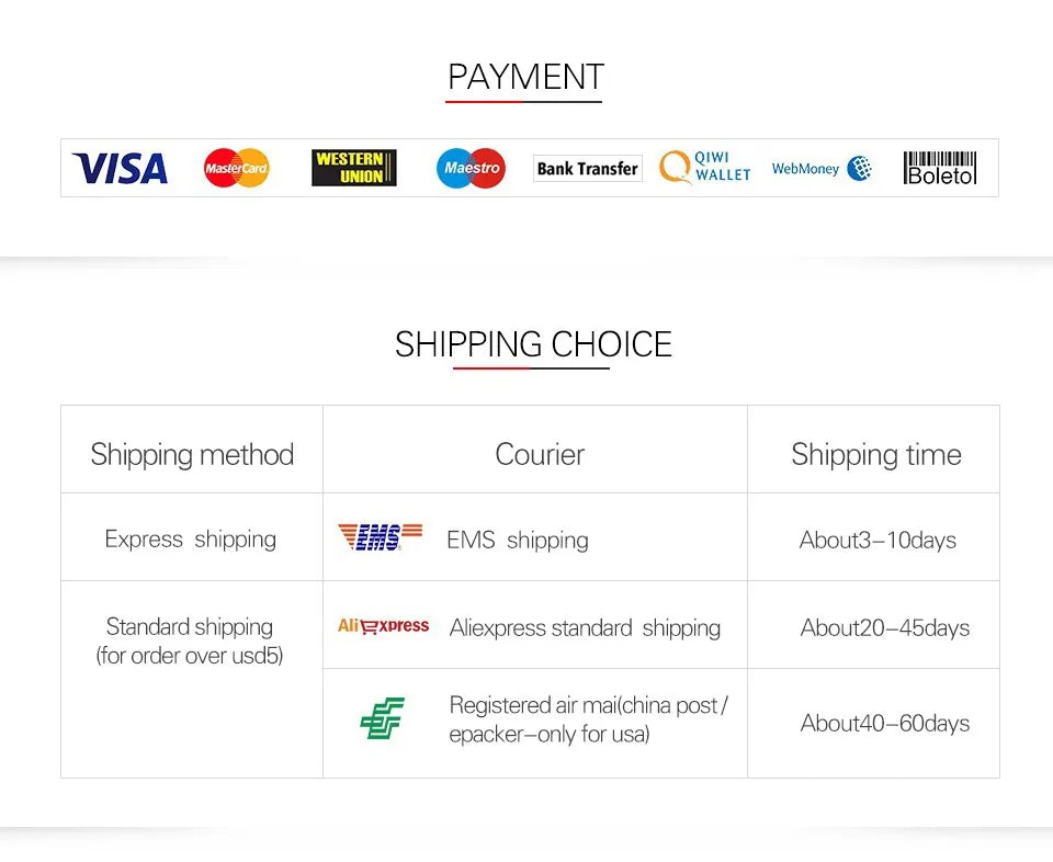 shipping company(China Post Air Mail,ePacket,Aliexpress Standard Shipping etc) you choose,